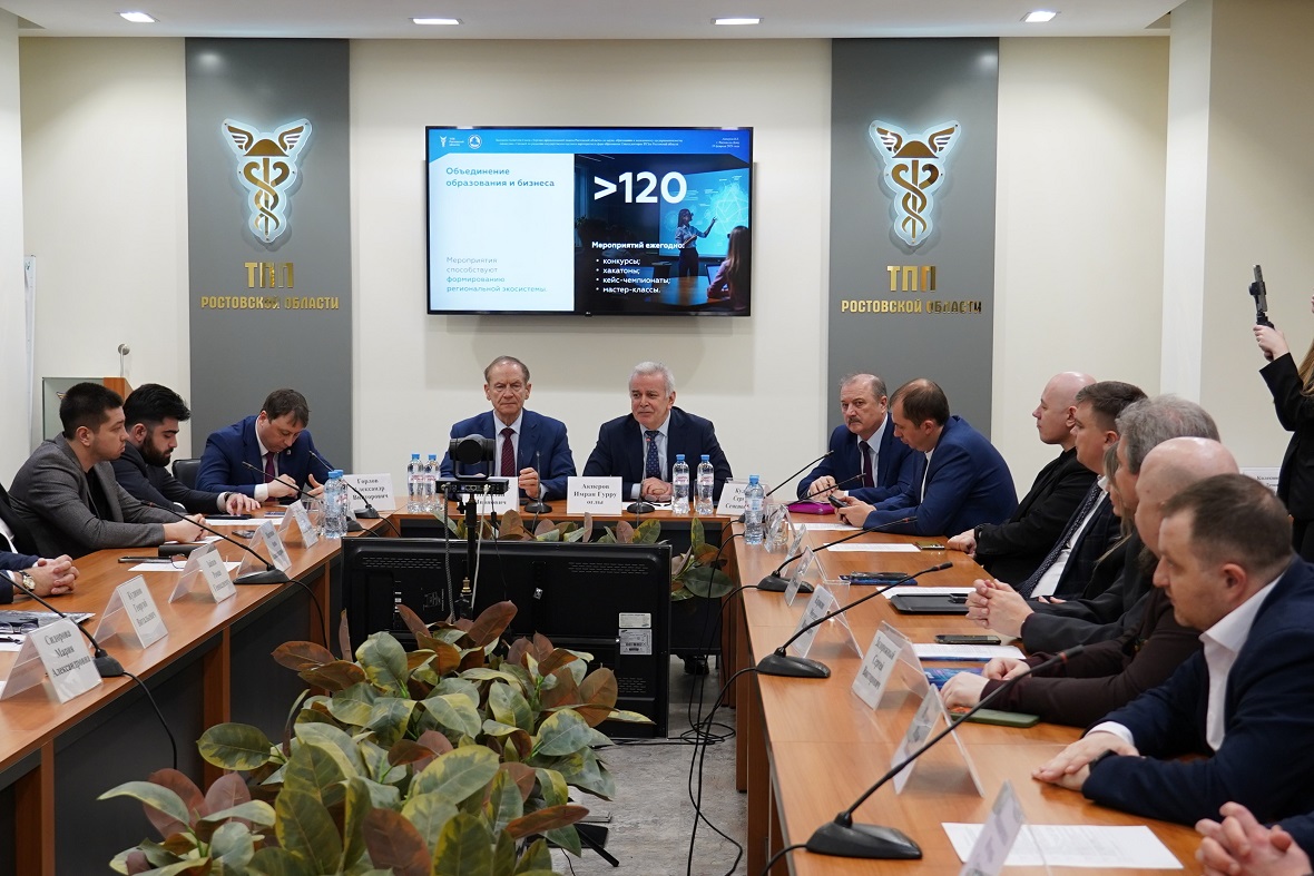 На площадке Торгово-промышленной палаты Ростовской области провели совместное заседание комитета союза «Торгово-промышленной палаты Ростовской области» по науке, образованию и молодежному предпринимательству совместно с секцией по развитию государственно-частного партнерства в сфере образования совета ректоров вузов региона.